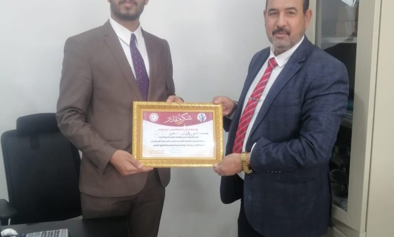 وفي الختام  كرم الأستاذ الجابري  امير قحطان  شهادة تقديري لجهودهم  في توفير أفضل الخدمات للمواطنين